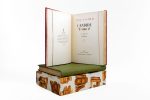 2 vol. in-4 maroquin vert clair à petit décor de maroquin brique (Zadig) et maroquin brique à petit décor de maroquin vert clair (Candide), dos lisses, titres en lettres brique ou vert clair en long, couv. illustrées coul. conservées, sous étui commun à rebords (N. Allainmat, 2010).
