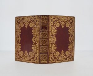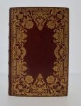 In-8 maroquin rouge ép., dos à nerfs orné de caissons à compartiments avec fleurs de lys centrale, titre doré, bel et large encadrement doré composé de rinceaux, compartiments et coquilles dorés, roulette sur les coupes et les chasses, tr. dorées.