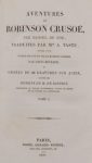 DE FOE (Daniel). Aventures de Robinson Crusoé. Traduites par Mme Tastu, suivies d'une notice sur Foé et sur le matelot Selkirk par Louis Reybaud et ornées de 50 gravures sur acier d'après les dessins de M. de SAINSON dessinateur du Voyage pittoresque autour du monde et du Voyage de l'Astrolabe. Paris, Didier, 1837.