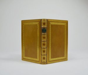 In-4, maroquin ocre, dos à nerfs richement orné, large décor doré encadrant les plats, double filet doré sur les coupes, large dentelle intérieure, tr. dorées, couv. conservées, sous étui (Bretault).