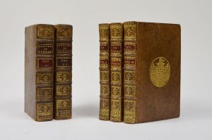 3 vol. in-12 veau marbré ép., dos à nerfs ornés, p. de titre et de tom. en mar. rouge, armes dorées sur les plats, roulette sur les coupes et les chasses.