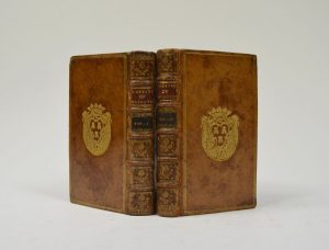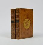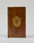 2 vol. in-12 veau jaspé ép., dos à nerfs orné de grenades dorées, p. de titre et de tom. en mar. rouge et vert, triple filet doré encadrant les plats, armes dorées au centre, coupes filetées, tr. rouges.