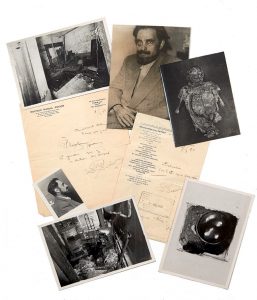 contexte de guerre, l'assassinat en série et la tentative d'élimination des cadavres par le feu sont les principaux points communs des deux affaires” (Philippe Zoummeroff). Le docteur Petiot fut reconnu coupable de 27 meurtres ; il en revendiqua 63, prétendant les avoir commis "pour la France”. Il fut guillotiné le 25 mai 1946. L'ensemble comprend : - 2 ordonnances autographes du docteur Petiot, datées de 1940. - 30 tirages de photographies prises entre 1944 et 1946 (de 12 x 17 cm à 18 x 24 cm). On y voit le docteur Petiot, sa femme, et toutes les images prises lors de la perquisition à son domicile : les restes humains calcinés découverts sur les lieux, l'hötel particulier où il avait établi son cabinet, la chaudière, la cave aménagée en chambre à gaz, le judas par lequel il regardait agoniser ses victimes, ainsi que des photographies prises lors du procès. - un important dossier judiciaire tapuscrit comprenant les procès verbaux d'interrogatoires de Petiot, des rapports, le compte rendu de son arrestation, la déposition d'un proche d'une des victimes, le réquisitoire définitif (35 pp.), le compte rendu de son exécution, et la liste des personnes disparues. - 58 journaux, parus entre 1944 et 1946 : Franc Tireur, Grand Echo du Nord de la France, Nord Éclair, Réveil du Nord, Combat, La France socialiste, Front national, La Montagne, etc., ainsi que 3 revues : Paris jour, Noir et blanc et Actu.