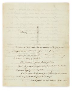 de sous-location d'un appartement situé rue des Célestins à Lyon pour une durée de seize mois, suivi de l'état des objets que Peytel vend à son locataire A. JANSON qui en a dressé la liste. Belley 12 mars 1838, au directeur du Journal des Notaires et des Avocats à Paris. En instance d'être nommé notaire à Belley, il se plaint d'un autre notaire de cette ville qui a débauché son premier clerc et demande quelle procédure il peut lancer contre lui. Il ajoute en post-scriptum qu'il joint une lettre à remettre à M. de Lamartine a la Chambre des Deputes Belley 9 janvier 1839, à un correspondant de Lyon. APRES SON ARRESTATlON...."Je suis à l'apogée de mes malheurs (...) Oh ! Monsieur ! Quelle horrible position ! Marié le 7 mai 1838, épouse brillante de santé et de beauté, cérémonie magnifique de simplicité. C'est aux pieds de la Vierge que Félicie dit ses sermens et la Vierge entendit les paroles d'une vierge. (...) Lamartine conduisoit Félicie à l'autel. Le ciel avoit béni notre union, j'allois bientot être père. Le premier novembre, j'ai cessé d'être époux, j'ai perdu l'espoir d'être père. Oh ! Monsieur, c'étoit affreux ! Dieu étoit avec moi, car il m'a donné une force surnaturelle. J'ai agi comme un homme de creur et d'âme, je n'ai pas fait comme un homme de loi. Aujourd'hui, monsieur, les hommes de loi me poursuivent, je suis en prison”. Son avocat Margerand lui communiquera les lettres qui lui expliqueront toutes les infamies dont il est accusé. Dans ces grandes douleurs, il est réconforté par le dévouement de ses amis et de ses parents, mais le souvenir de sa pauvre mère l'accable. "Priez un peu pour moi, priez pour ma mère, pour Félicie ma femme. Dieu aime les prières des justes et il abrégera ces tems d'épreuves”... ON joint les dossiers des cinq magistrats de la Cour d'assises de Bourg ayant pris part au procès de Peytel. Ancienne collection du bâtonnier Pierre-Antoine Perrod (4-5juillet 2001, n° 31).
