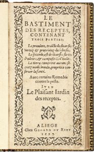 BASTIMENT DES RECEPTES (Le). Liège, Gérard du Rieu, 1597.