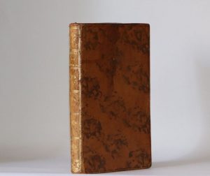 1769. In-12, 9,5 x 16,5 cm, IV + 184 pp., 2 ff., une carte repliée, basane fauve marbrée, dos orné de faux-nerfs et de fleurons dorés (reliure de l’époque).