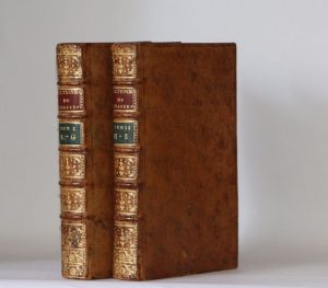 Paris, J.-B. G. Musier fils, 1769. 2 volumes in-12, 10,5 x 17 cm, 2 ff., LX + 476 pp. & 2 ff., 512 pp. (chiffrées 510), 3 ff., veau fauve marbré, dos à nerfs ornés de motifs dorés (reliures de l’époque).