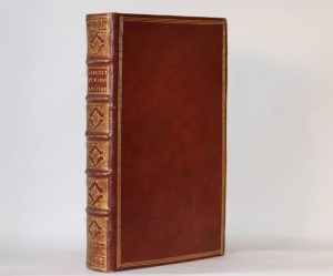In-4, 16 x 24,5 cm, 12 ff., 394 ff. (mal chiffrés 294), 20 ff., 24 + 22 pp., maroquin rouge, triple filet en encadrement sur les plats, dos à nerfs orné de motifs dorés (reliure à l’imitation).