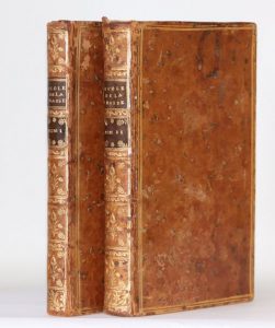 Rouen, Nicolas & Richard Lallemant, 1763. 2 volumes in-8, 12 x 20 cm, CCXXVI pp., 1 f. & 1 f., VIII + 396 + 14 pp., 16 pl. dont 13 repliées, veau fauve marbré, dos lisses entièrement ornés de motifs dorés, roulette intérieure dorée, tranches dorées (reliures de l’époque).