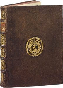 In-4, 19,5 x 14 cm, 164 pp., veau brun, armes dorées au centre des plats, dos à nerfs entièrement orné de motifs dorés (reliure de l’époque).