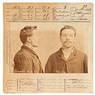 explosifs”. Elle est illustrée de son portrait photographique judiciaire (8 x 12 cm), tiré sur papier albuminé et daté du 30 mars 1892, jour de son arrestation, pour les attentats qu'il a perpétrés. Après avoir fabriqué de la fausse monnaie, et étranglé un vieillard aveugle et fortuné, Ravachol (1859-1892) décida de mettre ses talents au service de causes plus nobles en vengeant les anarchistes de Levallois-Perret. Il fit exploser une bombe au domicile d’un magistrat. Il sera guillotiné le 11 juillet 1892. On joint : - [RAVACHOL]. Photographie anthropométrique. Sans date. montee sur fiche cartonnee avec legende ,(mm 65x 103)Epreuve de l'epoque .Epreuve cassee .manuscrite au dos - [RAVACHOL]. Photographie le représentant avec 2 gendarmes. Tirage postérieur monté sur carton. - [HENRY (Émile)]. Photographie anthropométrique. [1893]. Épreuve de l'époque (80 x 60 mm), montée sur une fiche imprimée au verso. - [VAILLANT (Auguste)]. Photographie anthropométrique. 1878. Épreuve de l'époque (95 x 60 mm), montée sur fiche cartonnée avec légende manuscrite au dos.