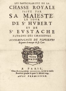 PARTICULARITEZ DE LA CHASSE ROYALE (Les) faite par Sa Maiesté le iour de St Hubert et de St Eustache…