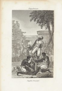 .originale Edition ELLE EST ILLUSTREE DE 60 GRAVURES A L’AQUATINTE REPRESENTANT PLUSIEURS EXECUTIONS ET SUPPLICES ABOMINABLES. Reliure usagée, avec parties détachées du dos.