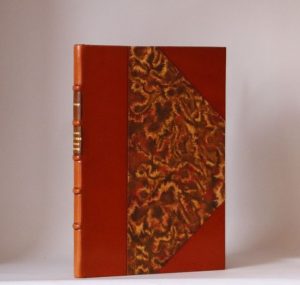 In-12, 13,5 x 19 cm, 3 ff., XX pp., 1 f., II pp., 1 f., 94 pp., 1 f., demi-veau orange à coins, dos à nerfs, couvertures (A. Ouvard, Moulins).