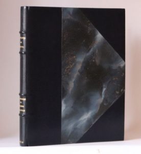 Paris, Durel, 1949. In-4, 19,5 x 24,5 cm, 100 pp., 1 f., 1 f. blanc, 11 pl., demi-chagrin bleu à coins, dos à nerfs, tête dorée, couvertures et dos (reliure de l’époque). Souvenirs et réflexions sur la forêt et la chasse en Lorraine.