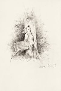 Paris, Le Document, 15 octobre 1941. In-8, 16 x 22 cm, 3 ff. blancs, 2 ff., 100 pp., 1 f., 2 ff. blancs, frontispice et 7 pl., demi-maroquin brun à coins, dos à nerfs orné de motifs cynégétiques dorés, tête dorée, couvertures et dos, non rogné (reliure du temps).