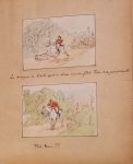 Album de 16 dessins originaux de Flamberge, contant l’histoire du marquis de Crack et de son chien Taïo partant chasser à courre.