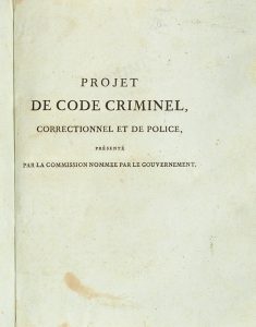[TARGET (Guy Jean-Baptiste) & Nicolas OUDART]. Projet de Code criminel, correctionnel et de police, présenté par la Commission nommée par le Gouvernement. Imprimé par les soins de J. J. Marcel, directeur de l'Imprimerie de la République, [1808]....