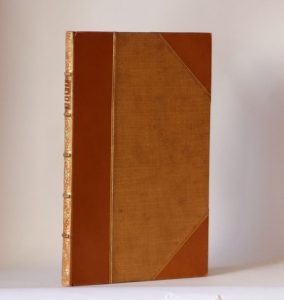 Villers-Cotterêts, Louis Toupet, 1883. Petit in-8, 12 x 19,5 cm, 82 pp., 1 f., demi-veau fauve à coins, dos à nerfs entièrement orné de motifs dorés, armes dorées en queue, couverture (Riviere & sons).