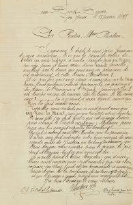 VACHER (Joseph, 1869-guillotiné 1898) éventreur, violeur et tueur en série (il inspira le film Le Juge et l'Assassin de Bertrand Tavernier). 3 lettres autographes signées, Lyon janvier-février 1898. 1 page in-fol., 1 page in-4 et 2 pages in-8...