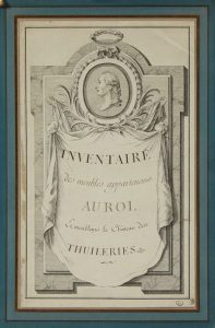 [TUILERIES]. Projet de frontispice gravé. Inscription manuscrite: Inventaire des meubles appartenans au roi et meublans le Château des Thuileries.
