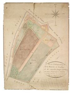 Plan topographique de la maison et enclos de Mr. Sordet, propriétaire à Précy sur Oise...levé par E. Boquet géomètre, le 2 février 1827.