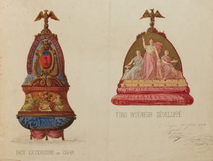 Nous présentons dans cette réunion, 5 dessins sur les travaux de décoration qu'il a effectué pour ce château en collaboration avec l'architecte Bibard à partir de 1860.