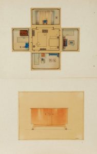 Ensemble de dix projets aquarellés sur calque.