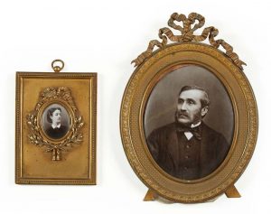 Portrait d'homme dans un cadre à poser rectangulaire à noeud en bronze ciselé et doré