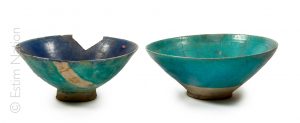 - deux coupes en porcelaine bleu (accident et manques) l'autre en porcelaine céladon (craquelures) Diamètre : 18.5 et 20.5 cm