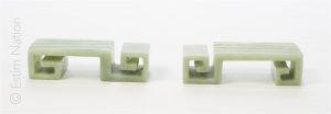 Paire d'éléments en jade jadéite sculptée en forme de grecques