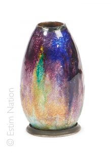 Petit vase en cuivre émaillé à décor polychrome abstrait