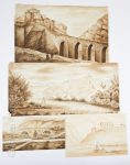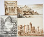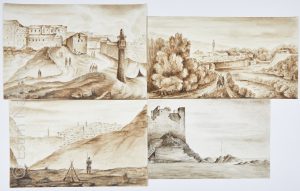 On y joint deux dessins au lavis d'encre figurant un château en France et le Fort Cigogne à Bône.