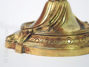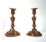 Paire de bougeoirs de forme mouvementée dans le style rocaille en bronze ciselé