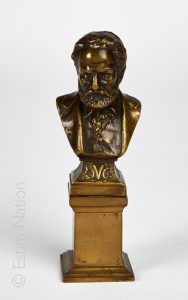 Epreuve en bronze à patine brune, annoté V sur le pied et "Né le 26 février 1802" au dos, sur un socle à section carré reposant sur une base à degrés.