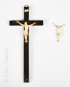 On y joint un christ vivant en ivoire sculpté, tête à gauche, perizonium noué sur la hanche.