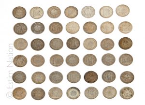 Quarante-deux (42) pièces de 5 Francs argent diverses type Hercule (900°/°°) :