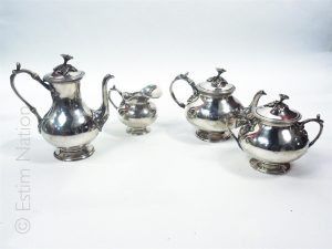 Service à thé-café en métal argenté, les anses et prises à décor ciselé de feuilles et fleurs, comprenant :
