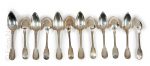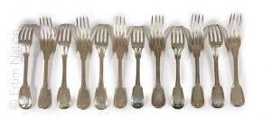 Partie de ménagère en argent 1er titre 925/°° modèle filets, décor chiffré pour la plupart, composée de 12 fourchettes et 12 cuillers de table.