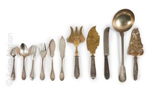 - Lot de couverts de service dont 4 éléments en argent fourré