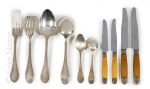 - Partie de ménagère comprenant des couverts et une louche à décor de rinceaux