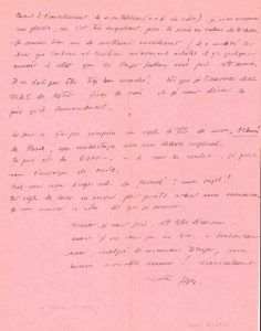 Puis il parle de l'encadrement de son tableau, «(c.a.d. de votre), je m'en occuperai avec plaisir, car c'est très important pour la mise en valeur de la chose. Je connais bien un des meilleurs encadreurs (il a encadré ces choses que Cocteau et Morihien m'avaient achetés il y a quelques années et celles que la Hugo-Gallery m'a pris cette année. Il ne doit pas être trop bon marché»... Il a pu «récupérer un expl. de tête de mon Album de Revel, sous emboîtage avec un dessin original», qu'il lui propose pour 6.000 F. Quant à l'album (Vingt-cinq reproductions), les exemplaires «de luxe ne seront pas prêt avant une semaine»...