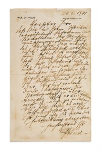 FREUD SIGMUND (1856-1939) L.A.S., Wien 28 juin 1931, à une dame; 1 page in-8 à son en-tête Prof. Dr. Freud (petit manque au bord sup., sans perte de texte; légères mouillures et petites réparations; lettre doublée); en allemand.