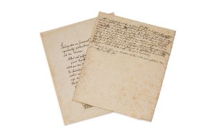KANT IMMANUEL (1724-1804) Philosophe allemand. MANUSCRIT autographe; demi-page in-4 (rousseurs); en allemand. Rare brouillon d'un texte philosophique. Ce brouillon de 13 lignes présente des ratures et corrections. «Alles was geschieht wird um der...