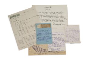 [28.I.1917], avec coupure de presse commentée. «Or ça, Curnonsky, comment se porte Votre Seigneurie ? La mienne s'est installée pour deux mois Hôtel Vouillemont, en villégiature»... On joint un manuscrit autographe de Marcel PAGNOL, traduction française du célèbre passage des Bucoliques de Virgile, 1958: «Pour le bel Alexis, délices de son maître,/Le berger Corydon était brûlé d'amour»... (8 vers sur 1 page in-4 oblong).