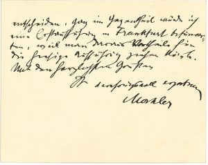 Il prépare pour Noël une représentation de Saba avec Slezak [le ténor Leo SLEZAK (1873- 1946)] dans le rôle d'Assad et la Schubert [la soprano Betty SCHUBERT (1876-1930)] pour la Reine. À cette occasion, il veut faire aussi le duo d'ouverture de l'acte IV [qui avait été coupé jusque là]. - Merlin ne peut être distribué qu'avec Slezak ; la note était décidément prématurée. Au contraire, il préconiserait une première à Francfort, car cela pourrait être avantageux pour la représentation à Vienne... «Ich bereite für Weihnachten eine Aufführung von den Saba vor mit Slezak als Assad und der Schubert als “Königin”. Bei diesen Gelegenheit will ich auch das Anfangsduett des IV. Aktes machen. - Merlin kann nur mit Slezak gegeben werden; die Note war daher entschieden verfrüht. Ich bitte wegen Frankfurt ganz ohne Rücksicht zu entscheiden, ganz im Gegentheil würde ich eine Erstaufführung in Frankfurt befürworten, weil man daraus Vortheile für die hiesige Aufführung ziehen könnte»...