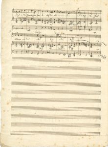 La mise en musique en est volontairement simple et dépouillée, mais touchante. Le manuscrit est soigneusement écrit à l'encre brune sur papier à 16 lignes, et présente quelques petites corrections. Le lied est marqué Andante, en ut, à 4 temps. Mendelssohn a écrit la musique et les paroles du premier couplet (18 mesures), avec la première mesure du second couplet. Il a copié le texte des paroles des strophes 2 à 5. Puis il a mis entièrement en musique (22 mesures) la dernière strophe où interviennent quelques délicates altérations qui rompent, pour le final, avec la forme strophique. En haut de la partition, le jeune compositeur a inscrit: «H. D. m» (Hilf Du mir), qui signifie: «Aide-moi», implorant l'aide de Dieu.