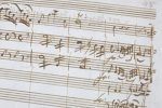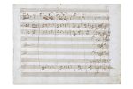 Sur un papier à 10 lignes (Tyson n° 31), Mozart a tracé un système de 8 portées, et noté à l'encre brune les huit parties, toutes actives dans ce passage: violon solo (ou «Violino principale»), violon I, violon II, viola (alto), hautbois I, hautbois II, cors, basse. Le manuscrit complet de la Serenade avait été vendu les 25-26 février 1975 par la firme Stargardt à Marburg (Kat. 605, n° 808); il a été ensuite démembré ; il comptait 58 feuillets, dont 11 seulement ont été recensés par Alan Tyson (Mozart Wasserzeichen-Katalog, Neue Mozart Ausgabe, X/33, 1-2), qui n'en mentionne aucun pour l'Andante; si quelques autres feuillets ont été depuis retrouvés, nous n'en avons pas non plus recensé pour ce second mouvement. Voir également Neue Mozart Ausgabe, IV, 12/2, band 3, Kritischer Bericht (1988), b/25-26.