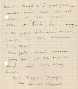 Il est accaparé par de gros travaux décoratifs («grosse dekorative Arbeiten wegen kein Zeit») et est désolé de n'avoir pas répondu à sa lettre. Il devrait avoir fi ni dans le mois («Die grosse dekorativen Arbeiten mussen in dies Monat fertig sein»)...