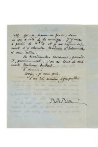 «Ce matin, en faisant retenir notre table pour demain, j'ai vérifié encore le numéro de la rue de Berri où se trouve le charmant Thé russe pour vous épargner toute incertitude et recherche : c'est bien au 38 ; on traverse un magasin russe dont les devantures sont peintes en bleu. En entrant servez-vous de mon nom pour être conduit à notre table qui se trouve au fond, dans un coin à côté de la musique. J'y serai à partir de 4h ¼ et je me réjouis infiniment d'y atteindre Madame d'Estournelles et vous-même. Les marionnettes revivront, paraît-il, prochainement ; j'ai ai tout de suite averti Madame Dubost»